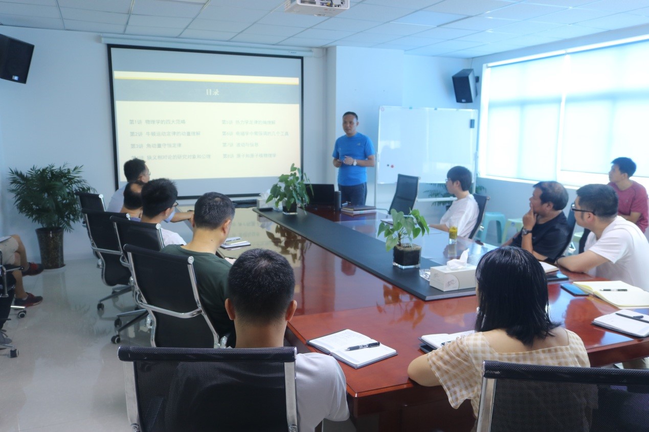 基礎(chǔ)知識(shí)是創(chuàng)新的根基和源泉。在邀請(qǐng)多位科研院所、高校的教授、博導(dǎo)蒞臨講學(xué)后,為進(jìn)一步夯實(shí)研發(fā)團(tuán)隊(duì)基礎(chǔ)能力,8月4日至7日,公司特地邀請(qǐng)了浙江省紹興市鑒湖中學(xué)物理特級(jí)教師兼浙江師范大學(xué)物理學(xué)科教育研究生導(dǎo)師陳敏華博士,依托德國(guó)卡爾斯魯厄大學(xué)物理教材(該教材充分體現(xiàn)了德國(guó)物理教學(xué)的嚴(yán)謹(jǐn)性和系統(tǒng)性,對(duì)物理概念的外延、內(nèi)涵有深刻的闡述,對(duì)物理學(xué)專業(yè)學(xué)習(xí)會(huì)產(chǎn)生不可估量的深遠(yuǎn)影響,下文對(duì)該教材簡(jiǎn)稱KPK),利用三天時(shí)間,系統(tǒng)梳理了力、熱、電、磁、波動(dòng)及原子和原子核物理的基礎(chǔ)。