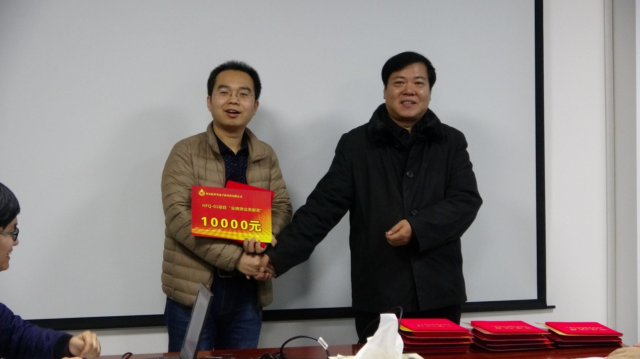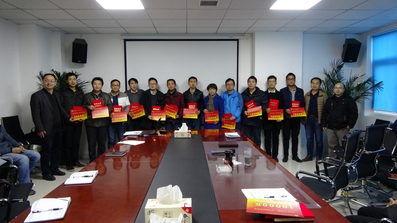 緊接著公司總經(jīng)理靳有林、副總經(jīng)理陳紅明、總工程師馬俊分別為項(xiàng)目組其他受到表彰的成員頒發(fā)榮譽(yù)證書及獎金,并合影留念。