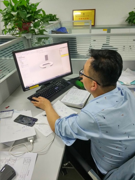 圖為趙工在畫(huà)設(shè)計(jì)圖